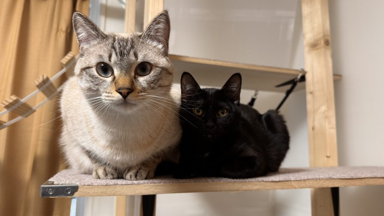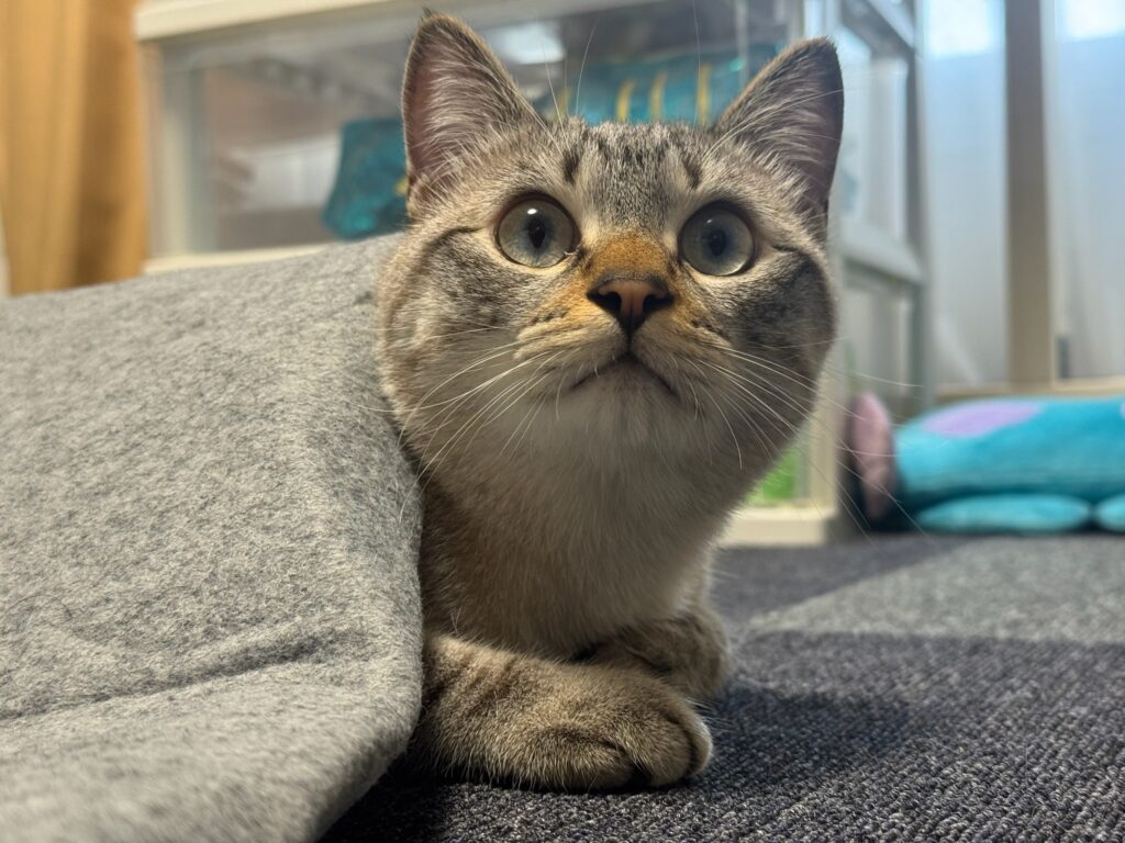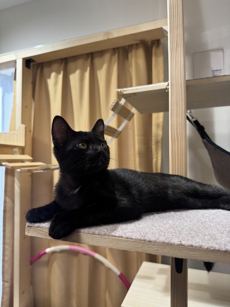 妊娠しているお母さんネコが保護され、生まれたときからヒトがいることに慣れています